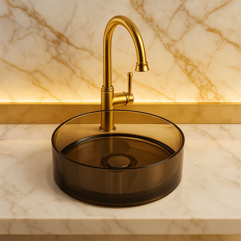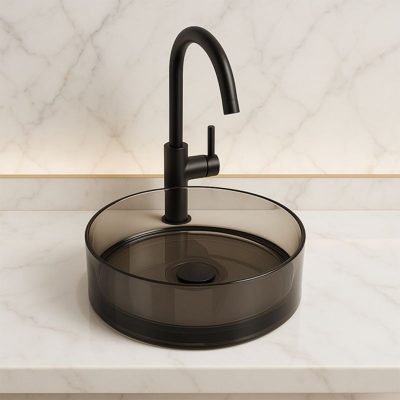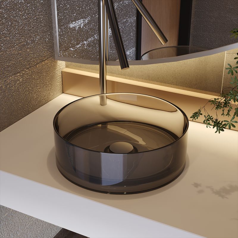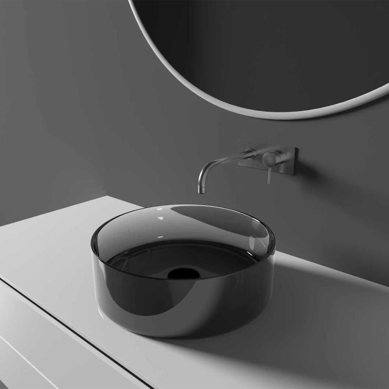 Design spectaculos si exclusivist – Forma rotunda si suprafata transparenta creeaza un efect vizual de profunzime si rafinament, transformand lavoarul intr-o piesa centrala cu impact estetic puternic.