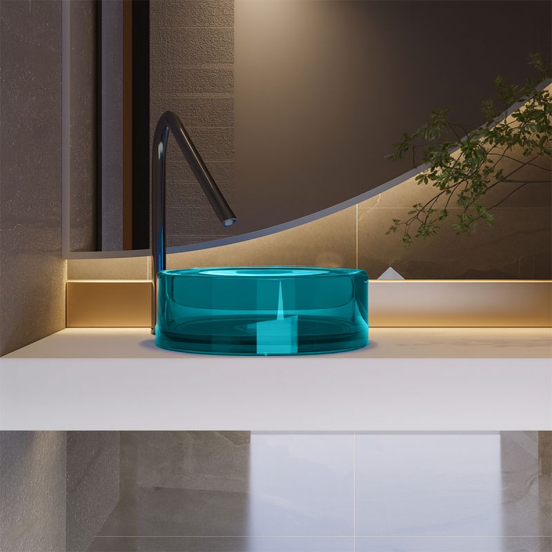 Impact estetic si culoare rafinata – Nuanta albastru lucios si textura translucida creeaza un efect vizual elegant si modern, adaugand profunzime si luminozitate blatului de baie.