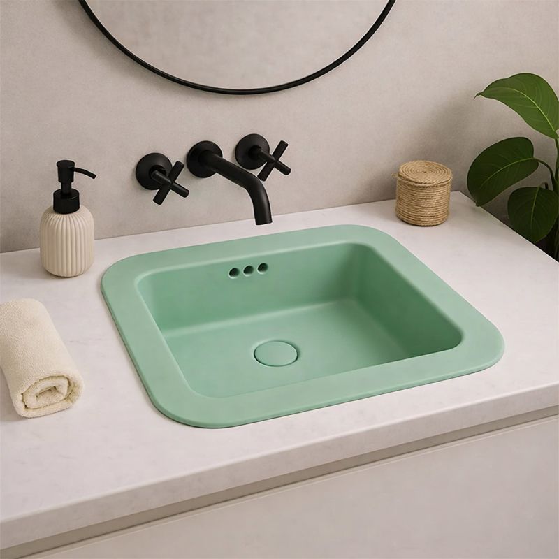 Finisajul Verde Mint Mat ofera un aspect sofisticat si contemporan, ideal pentru bai moderne sau minimaliste. Montajul semi-incastrat permite integrarea eleganta in blat,