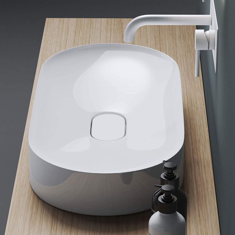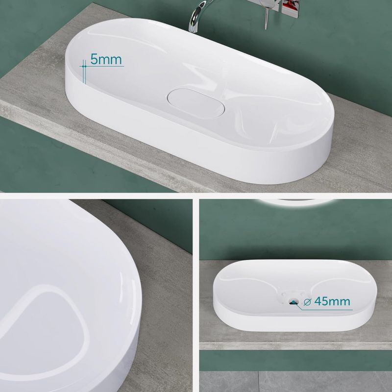 Lavoar EGO 826, Alb, lucios, scurgere ascunsa, 71x35 cm, compozit marmura, montaj pe blat