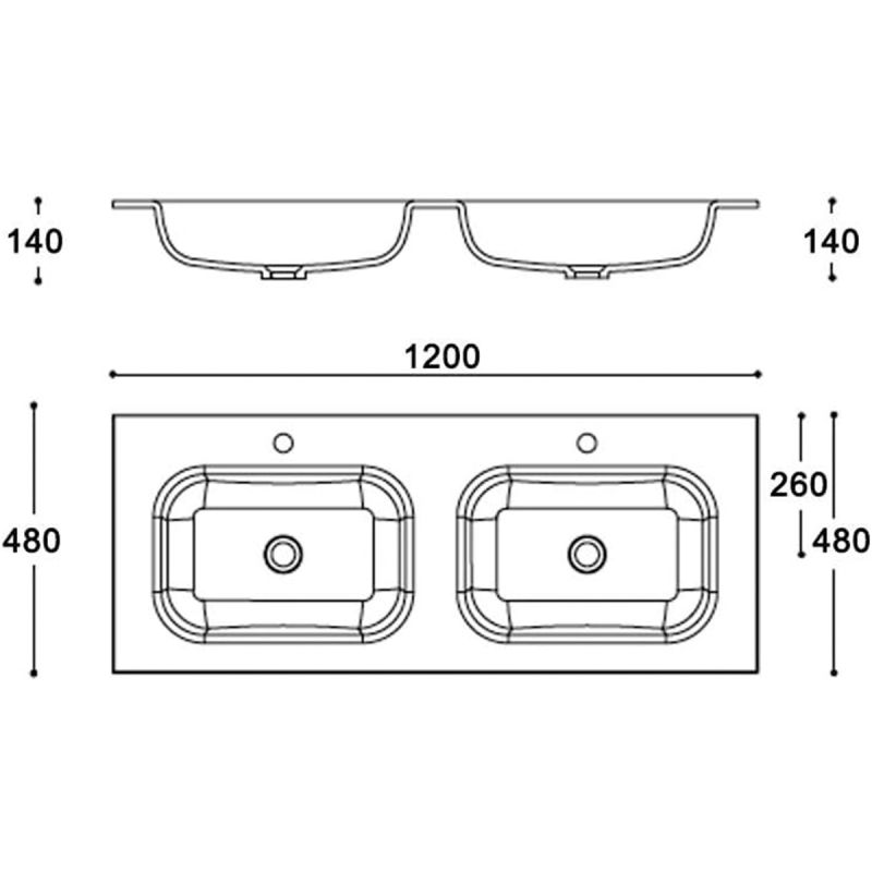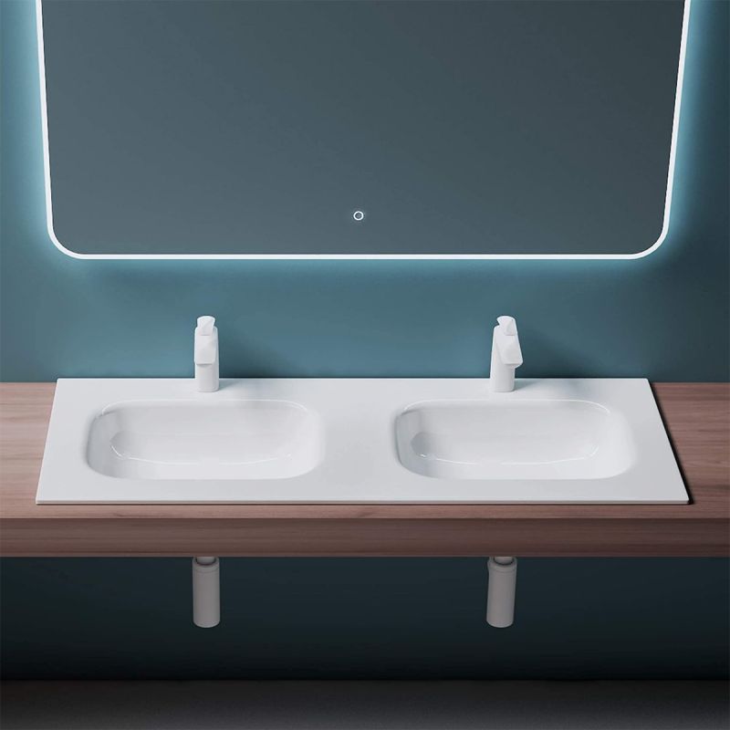 Lavoar dublu EGO 04, Alb lucios, 120 sau 144 cm, montaj semi-incastrat, compozit marmura, cu doua gauri de baterie
