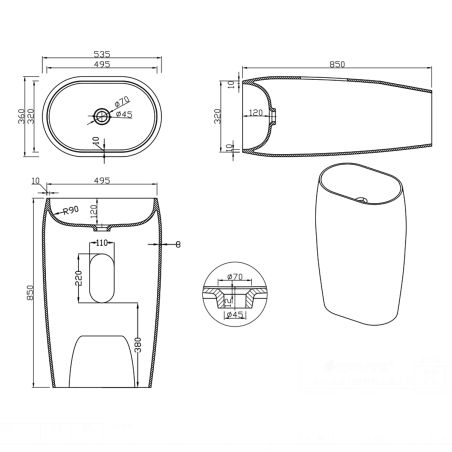 Lavoar stativ EGO-32, compozit marmura, 53x36x85 cm, fara gaura baterie