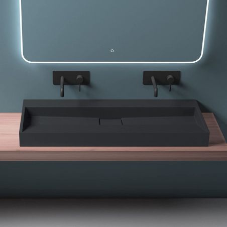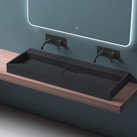 Lavoar Dublu EGO 19, Antracit, mat, 120 cm, compozit marmura, montaj suspendat sau pe blat, fara gaura de baterie