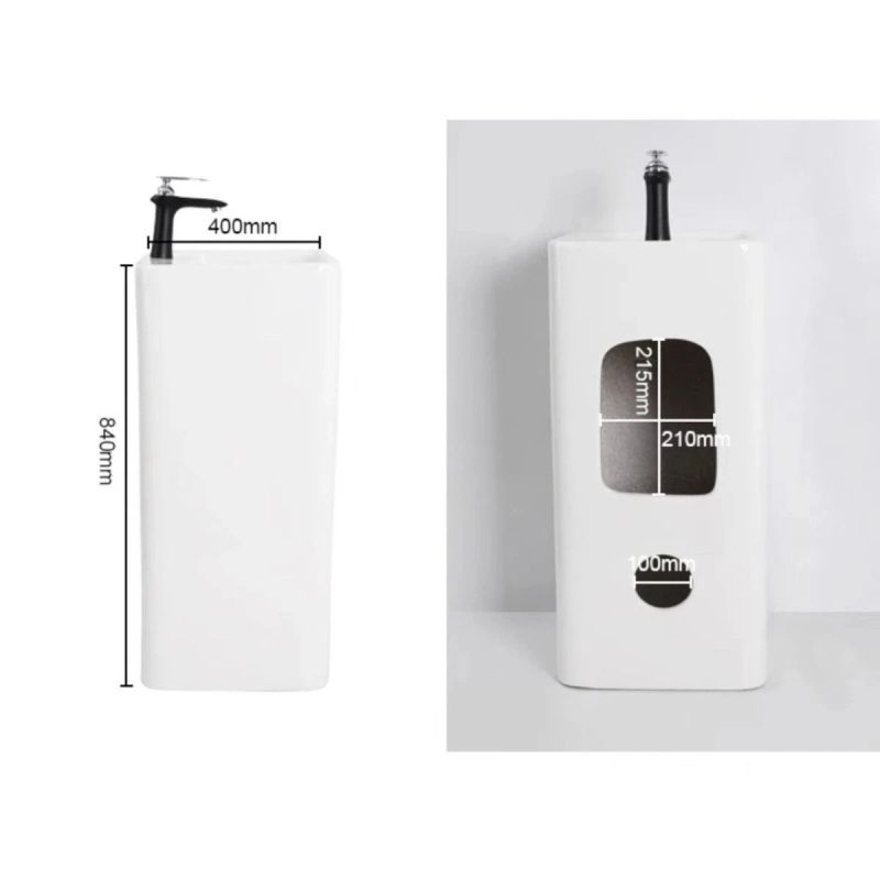 Lavoar stativ Bufon, Alb, 40x40x84 cm, cu gaura de baterie, montaj pe podea, ceramica sanitara