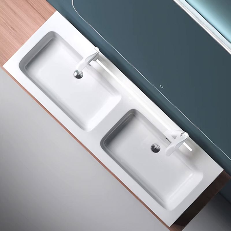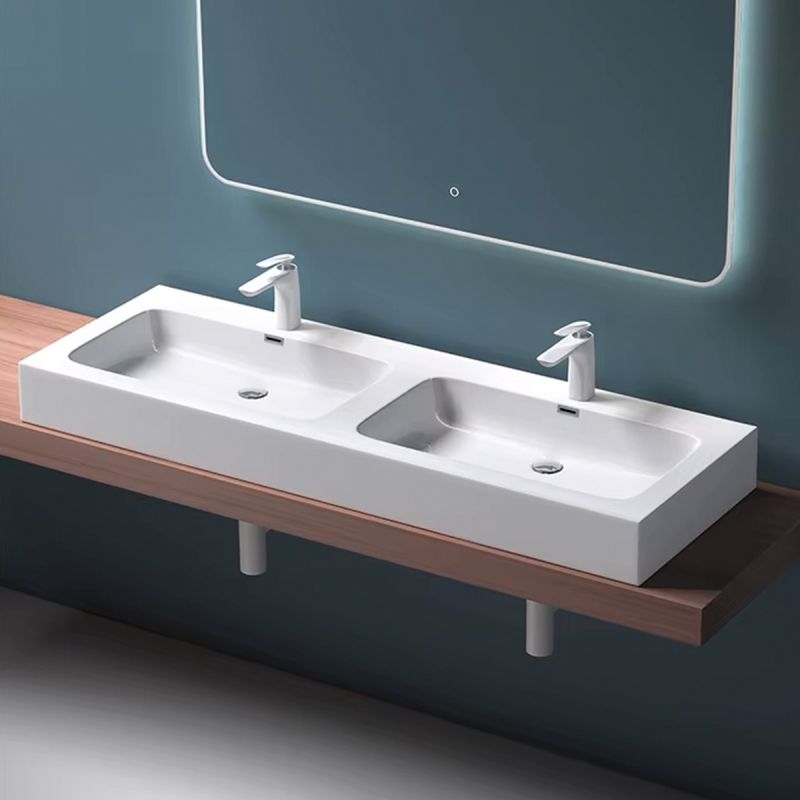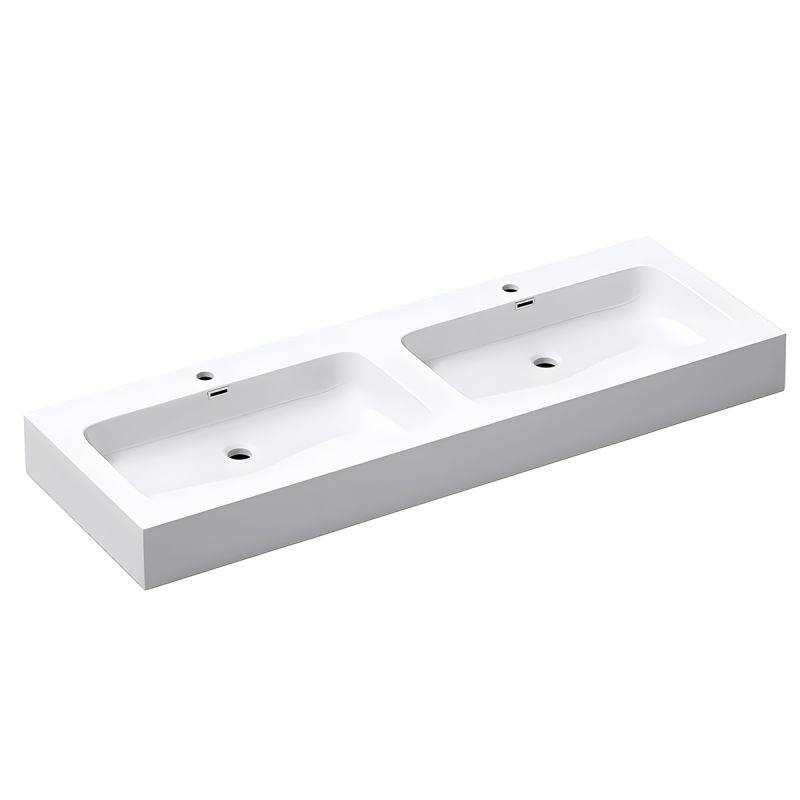 Lavoar dublu EGO 830, Alb, mat, 140x48 cm, montaj pe blat sau suspendat, compozit marmura, cu doua gauri de baterie