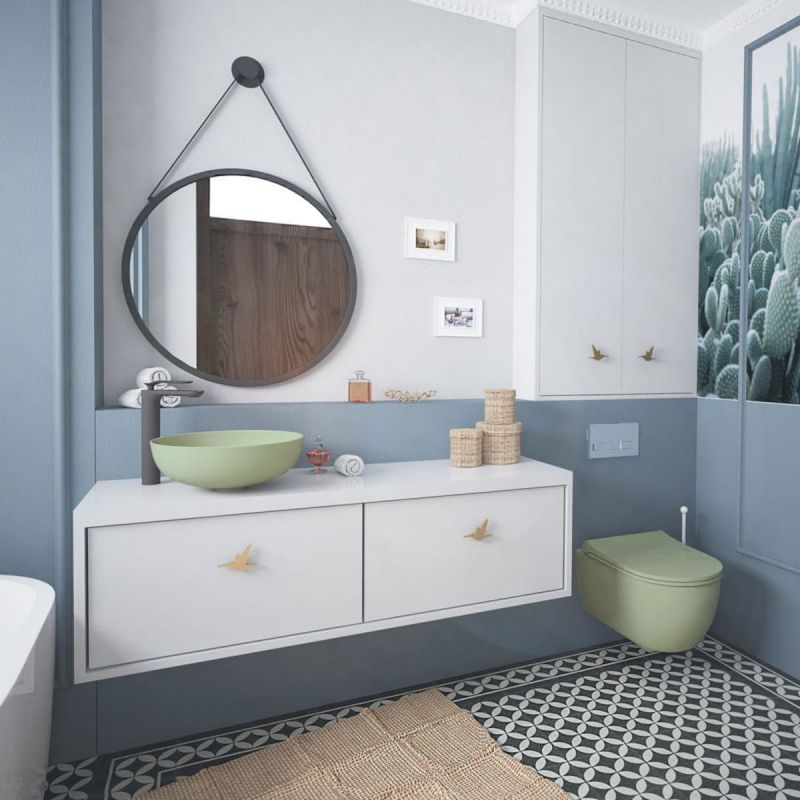 Lavoar, diametru 45 cm, Verde Mint Mat, Power Colour, montaj pe blat, ceramica sanitara, Molis