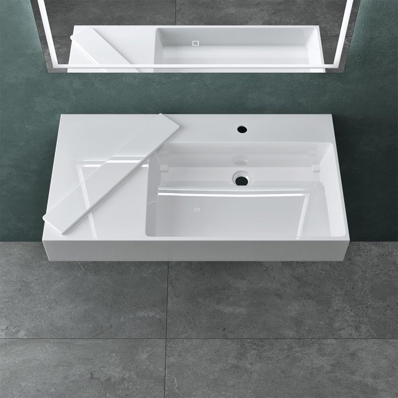 Lavoar EGO 12 , Alb, 120x48 cm, compozit marmura, montaj pe blat sau suspendat, scurgere mascata