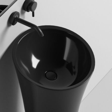 Lavoar stativ, Negru Lucios, 42x42x96 cm, montaj pe podea, ceramica sanitara, David