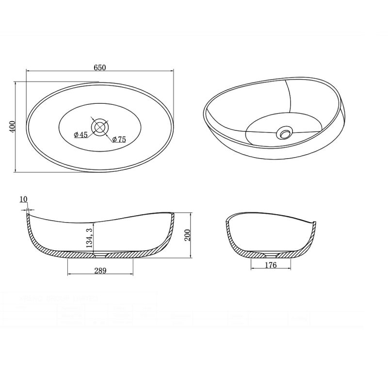 Lavoar compozit mineral, Negru Mat, montaj pe blat, ventil inclus negru mat, 65x40x20 cm, Lirio