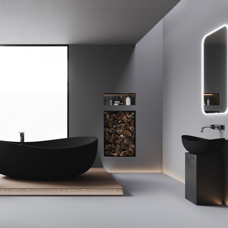 Colectia Lirio by Ego Interiors aduce o nota de rafinament si lux in spatiul dvs. de baie, iar lavoarul din compozit mineral negru mat este expresia pura a acestui concept.
