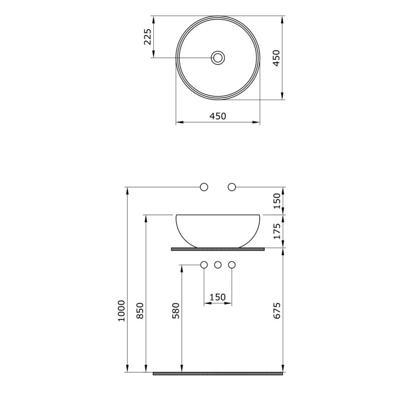 Lavoar, diametru 45 cm, Mandarin Lucios, montaj pe blat, ceramica sanitara, Michael