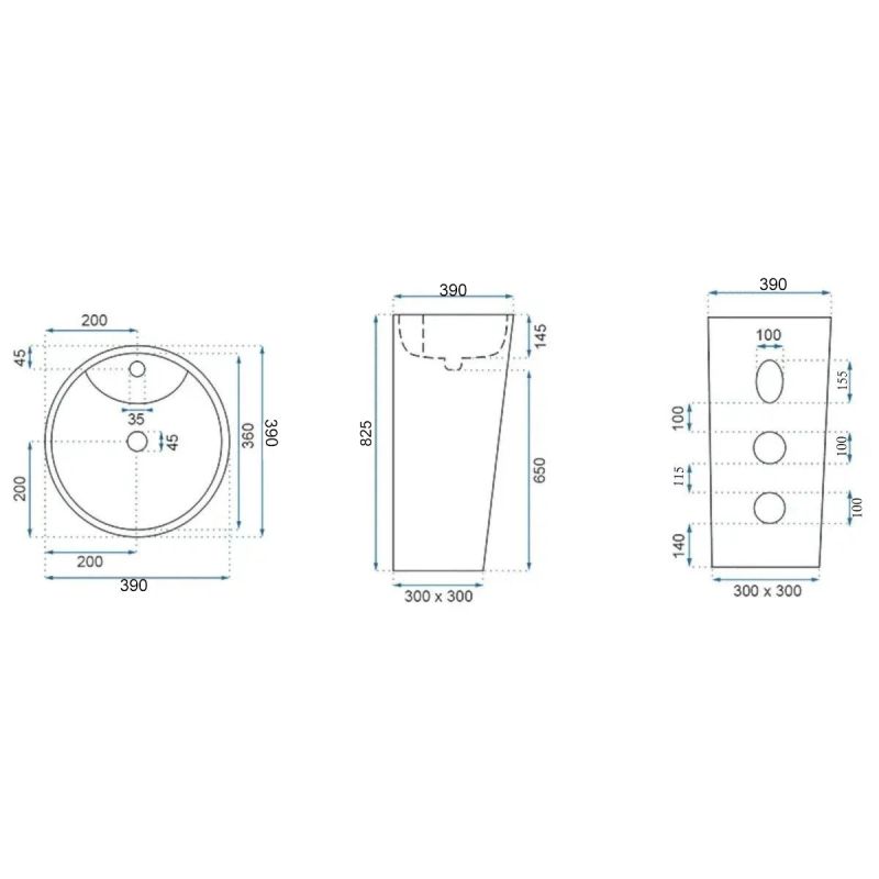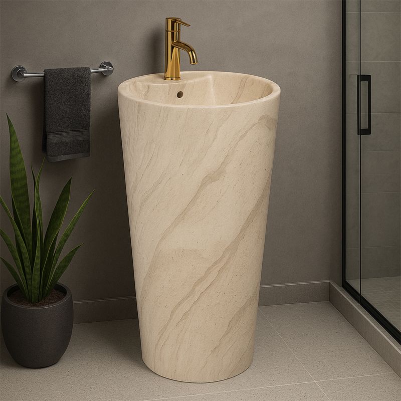 Lavoar stativ, finisaj piatra naturala, 39x39x82 cm, montaj pe podea, ceramica sanitara, Lucia Stone