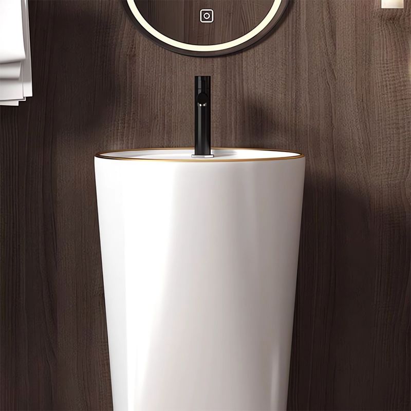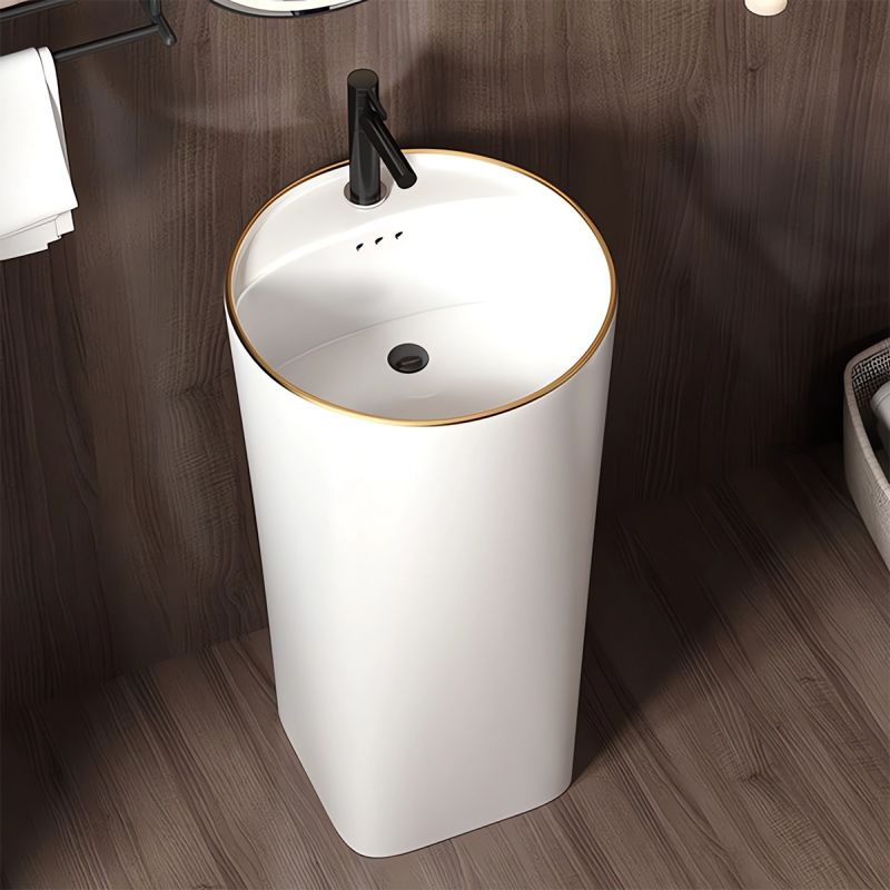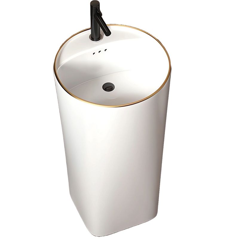 Lavoar stativ, freestanding, Alb Lucios, ceramica sanitara, 45x85 cm, cu gaura baterie, Viena Gold Line