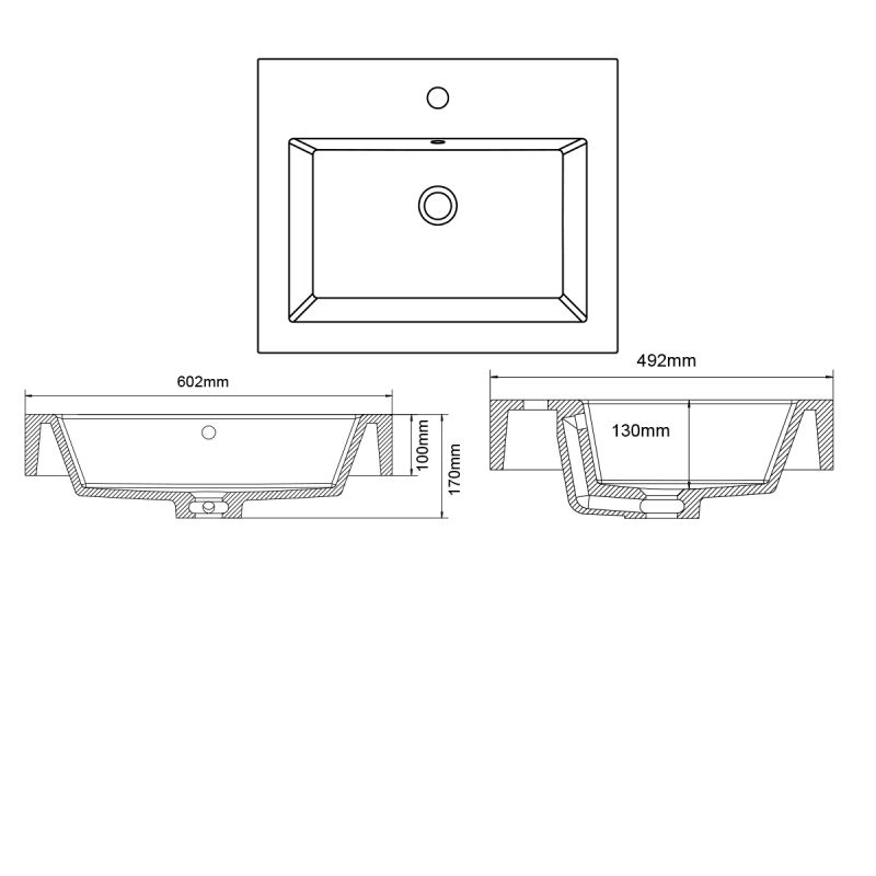 Lavoar, compozit mineral, montaj semi-incastrat, cu gaura de baterie, 60x49 cm, Genova
