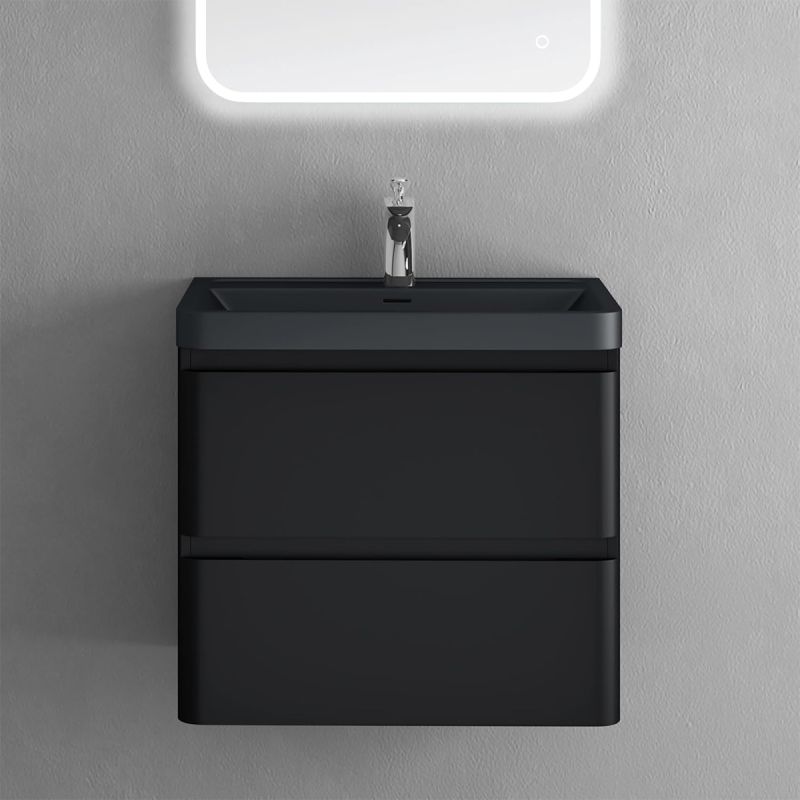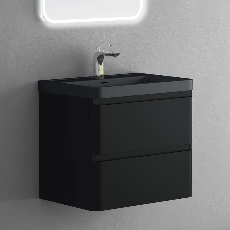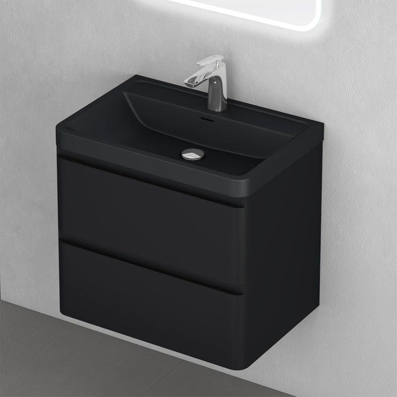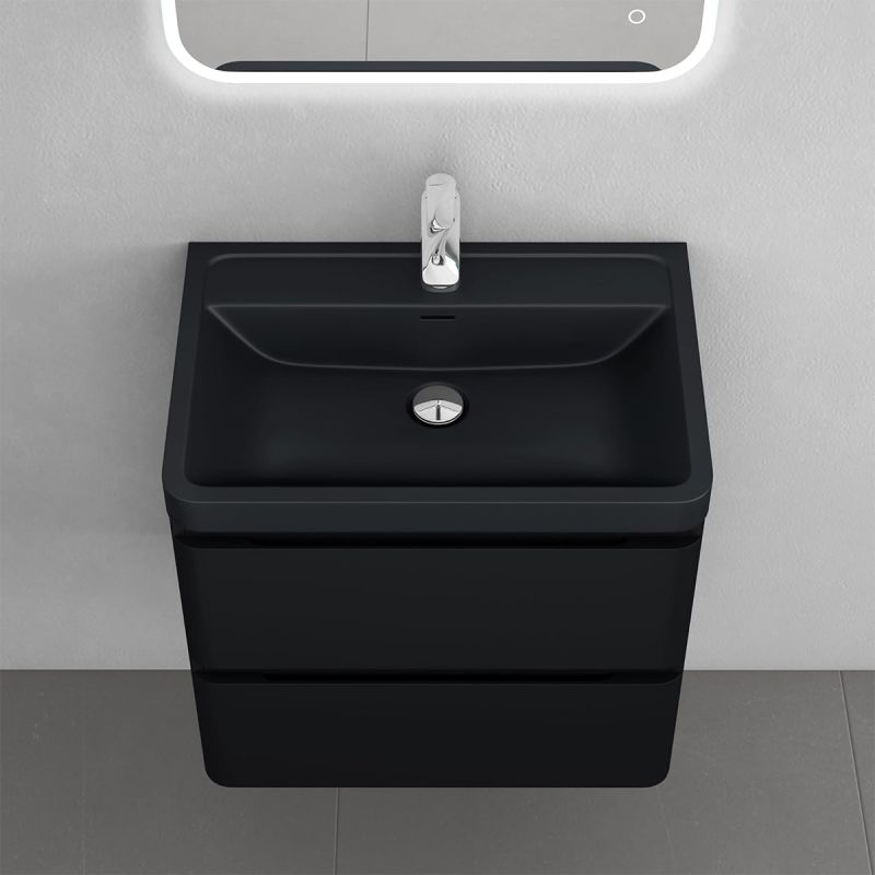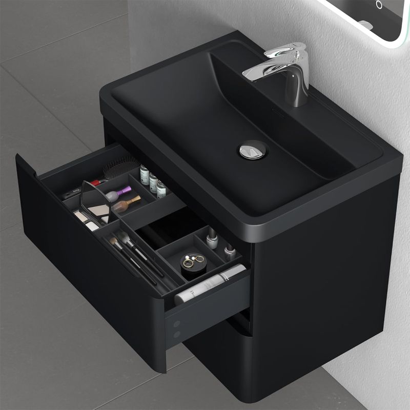 Mobilier baie din Mdf cu lavoar din compozit, separatoare sertare, inchidere Soft-Close, 60x42x55 cm, Negru Mat, Verona