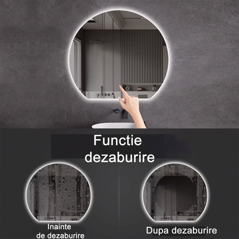 Functie de dezaburire activata manual – prin simpla atingere a butonului touch, oglinda ramane clara chiar si dupa dusuri fierbinti