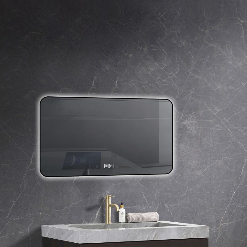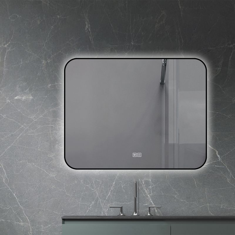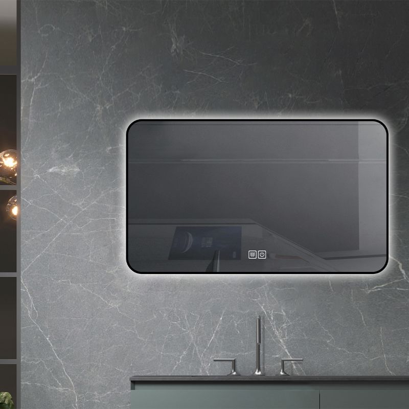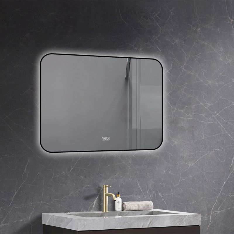 Oglinda Led, Cadru negru, Dezaburire, Buton Touch, 3 Culori, Intensitate reglabila, dimensiuni 60-70x80-90-150 cm, Feliz
