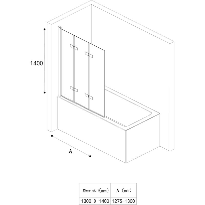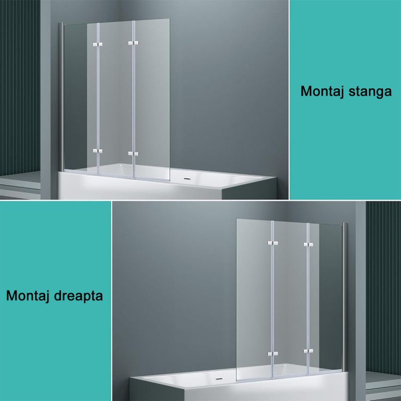 Paravan pliabil ,130x140 cm, sticla 6 mm, pivotant 180°, montaj pe stanga, EGO-116, tratament Nano Easy Clean