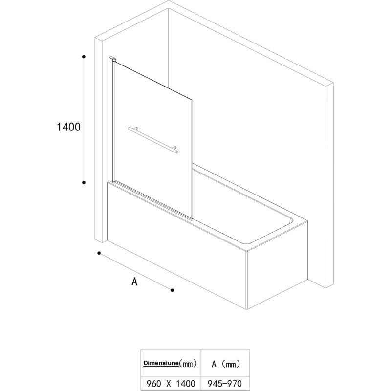 Paravan cada EGO-1121, sticla securizata 6 mm, Transparent sau Sablata partial, 94x140 cm, pivotant 180°, Nano Easy Clean