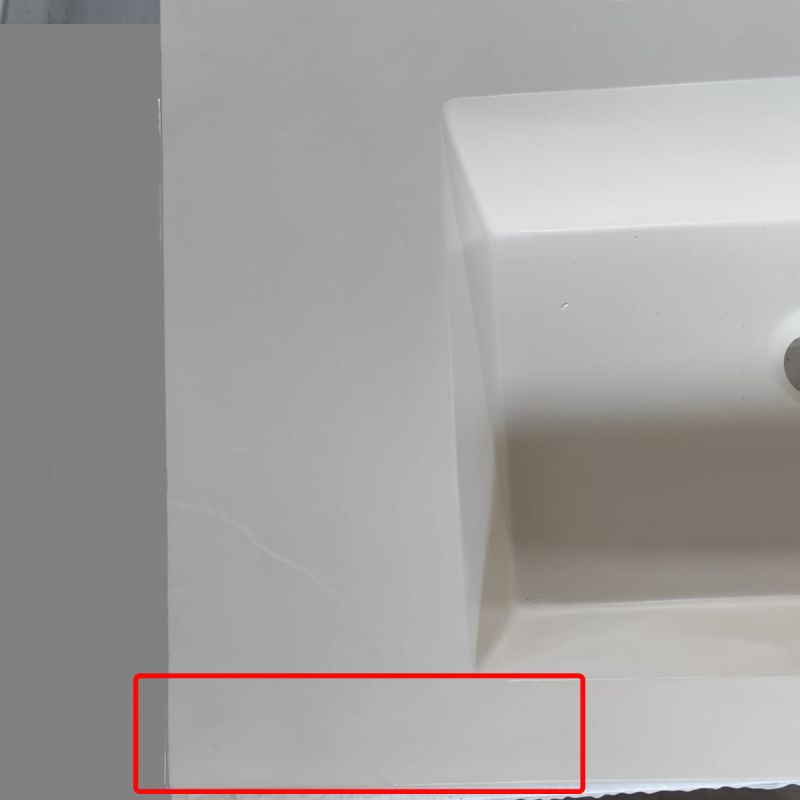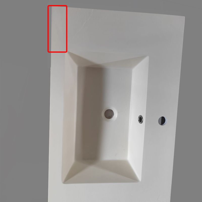 Lavoarul prezinta un defect estetic fin, localizat intr-unul dintre colturi, unde finisajul tip ardezie lipseste partial. Imperfectiunea este insesizabila la o privire obisnuita si nu afecteaza in niciun fel functionalitatea sau structura produsului.