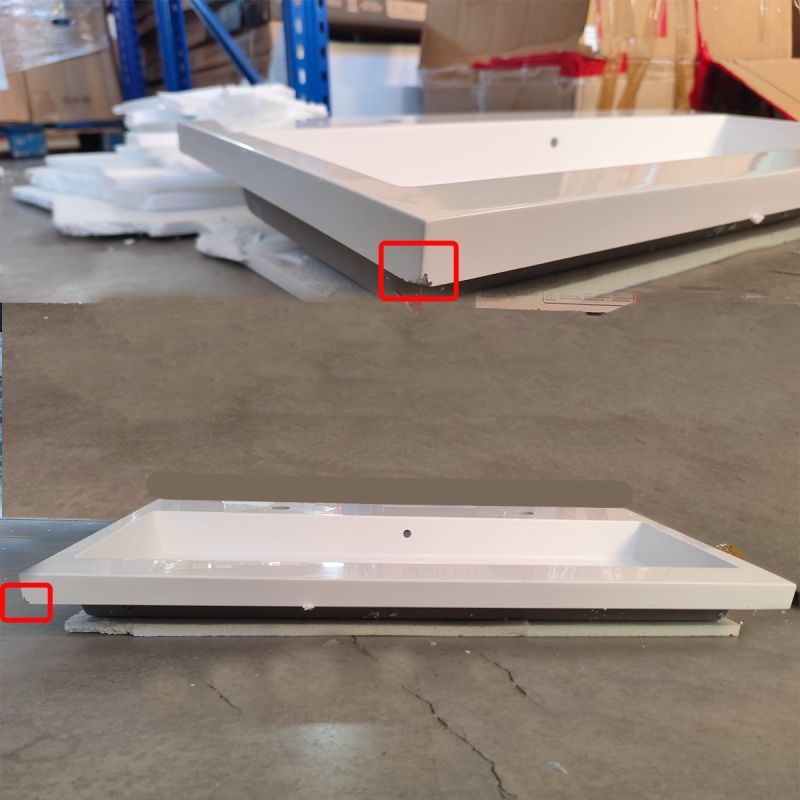 Defect discret si insesizabil – mica imperfectiune situata in coltul inferior stanga nu afecteaza utilizarea sau aspectul vizibil si poate fi complet mascata la montaj, oferind un produs estetic si functional la un pret redus.