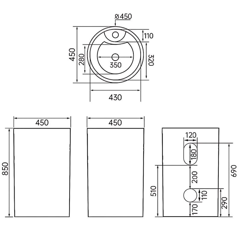 Cu un diametru de 45 cm si o inaltime de 85 cm, lavoarul Modena are proportii atent gandite pentru a oferi confort in utilizare si un impact estetic deosebit. Forma rotunda contribuie la fluiditatea vizuala a spatiului si aduce o senzatie de echilibru si rafinament. Dimensiunile sale il fac potrivit pentru bai rezidentiale moderne, bai de oaspeti amenajate cu stil sau proiecte HoReCa in care imaginea si atentia la detalii sunt esentiale.