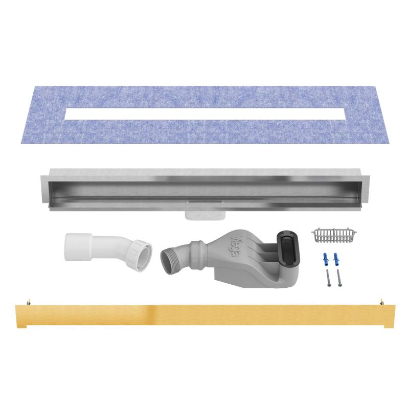 Rigola de dus montaj pe perete, Auriu Lucios, Viega, 60, 80 cm x 7,4 cm – Eleganta si Functionalitate de Inalta Calitate