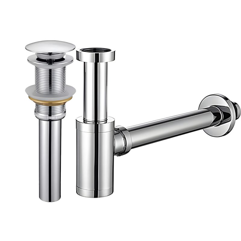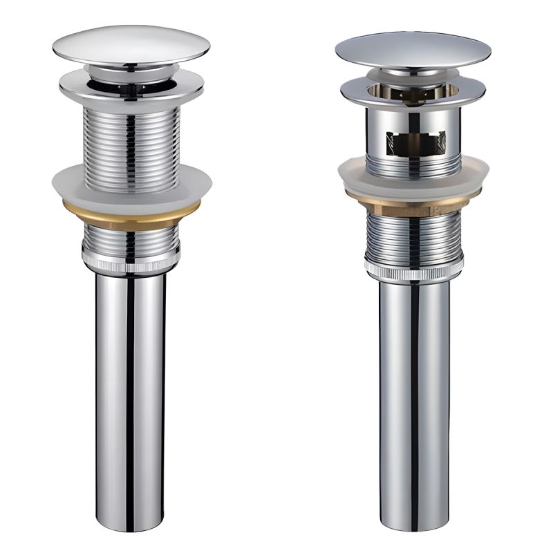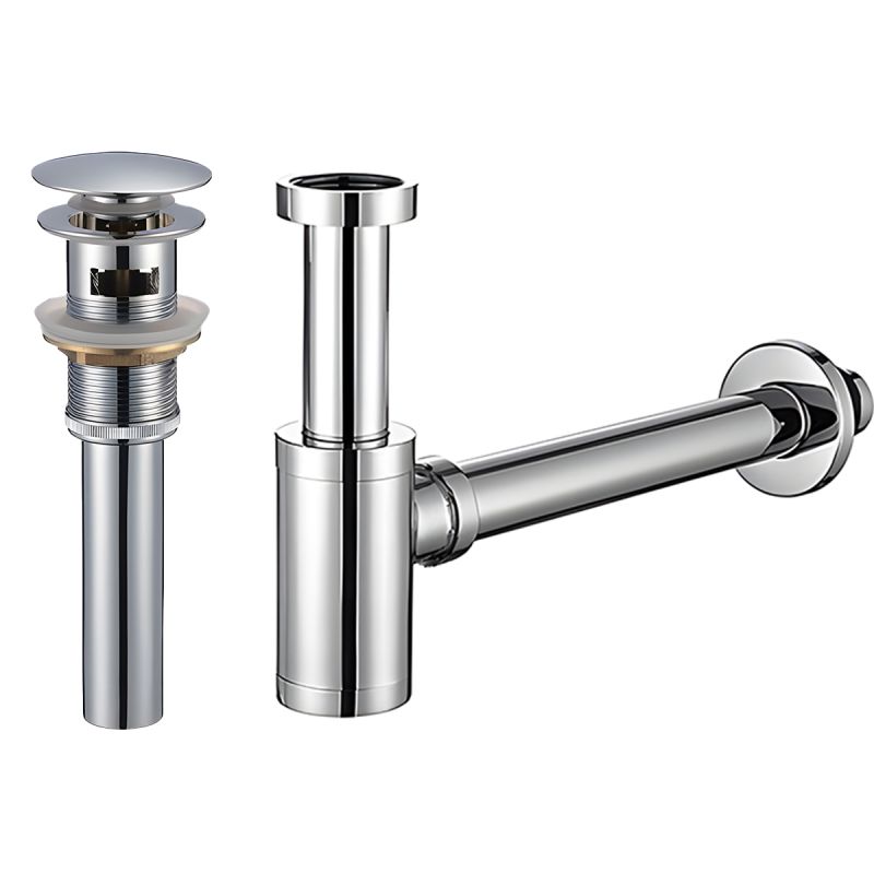 Sifon de scurgere cu ventil, sistem Pop-up, Crom, cu sau fara preaplin, etansare din silicon, Zaro