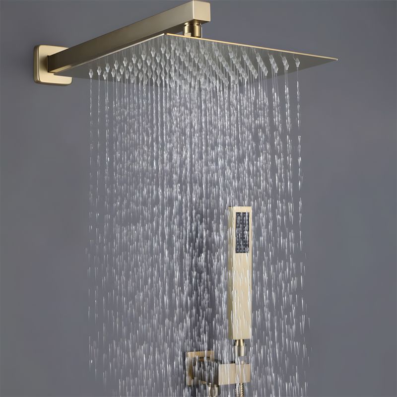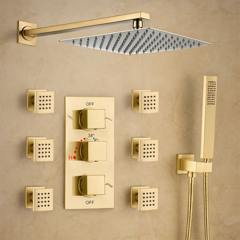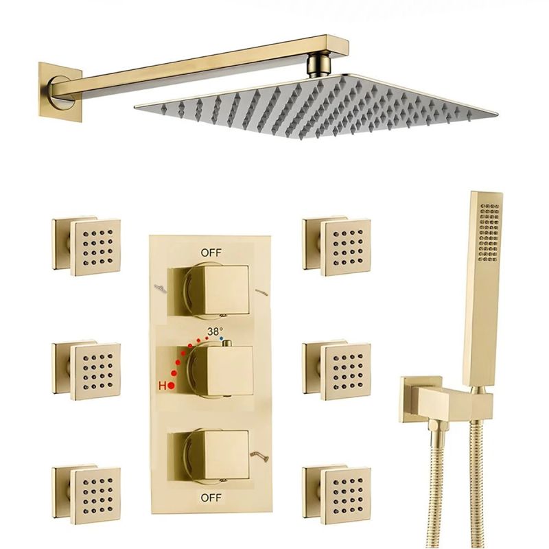 Sistem de dus cu termostat, 6 duze de masaj, montaj incastrat in perete, Alama, Auriu Mat, Vento