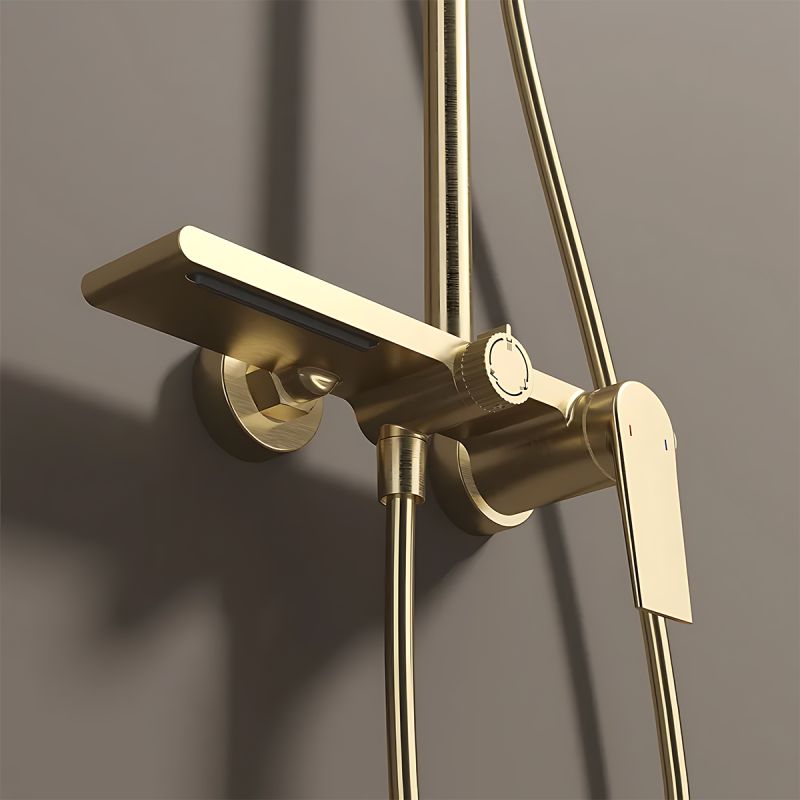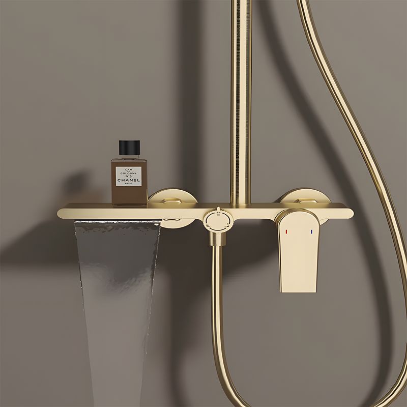 Sistem de dus, pipa de cada tip cascada, 3 functii, suport obiecte, montaj pe perete, Auriu Mat, Divina