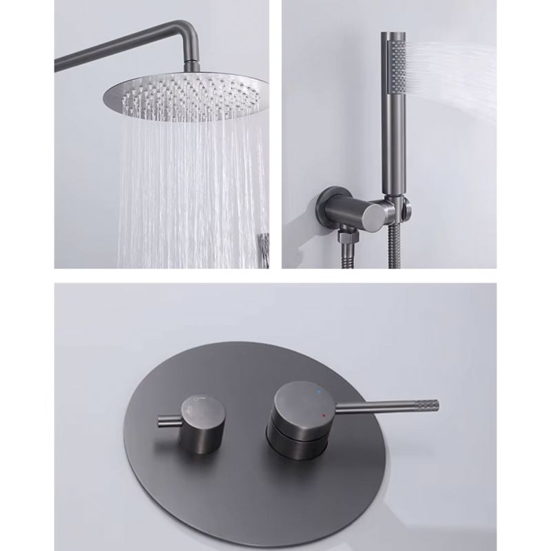 Sistem de dus, Gun grey, 2 functii, otel, baterie incastrata cu monocomanda, Fino