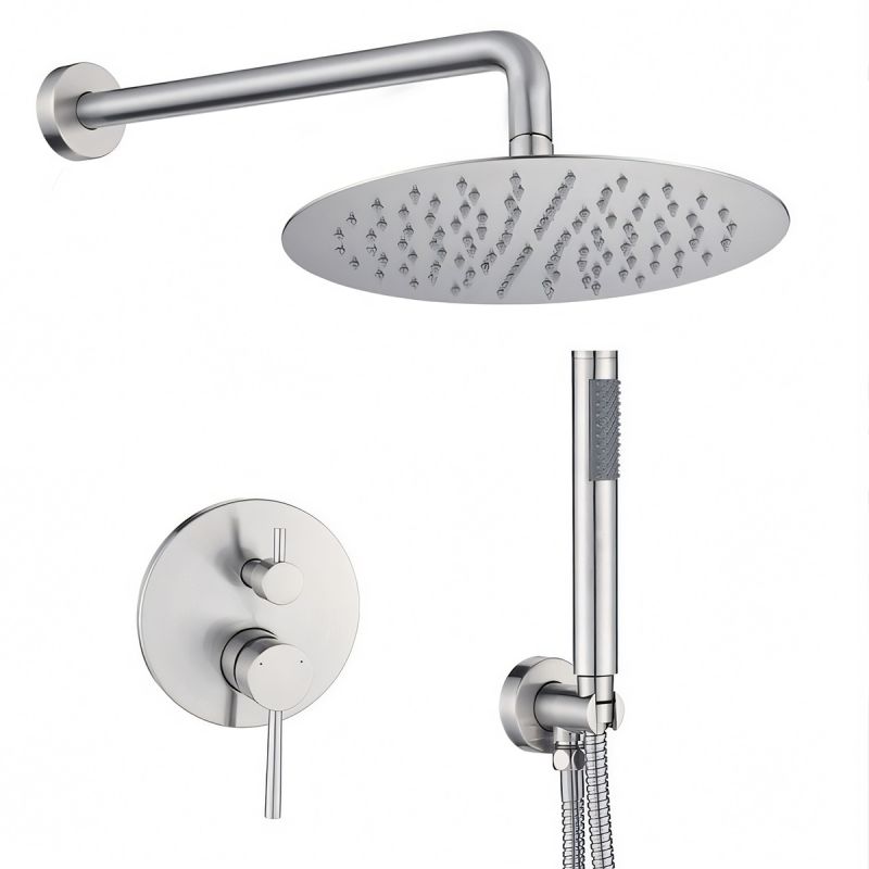 Sistem de dus, Nichel Mat, 2 functii, otel, baterie incastrata cu monocomanda, Fino