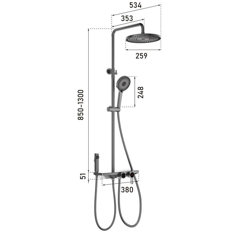 Sistemul este echipat cu doua capete de dus de mana, fiecare cu o lungime de 24,8 cm, ce pot fi utilizate alternativ sau in functie de preferintele utilizatorilor. Aceasta configuratie ofera o libertate sporita de miscare si adaptabilitate in utilizare – ideala pentru familii sau pentru spatii cu cerinte variate.