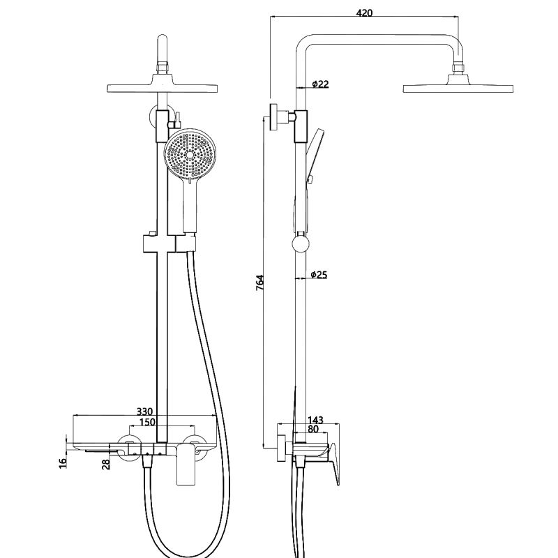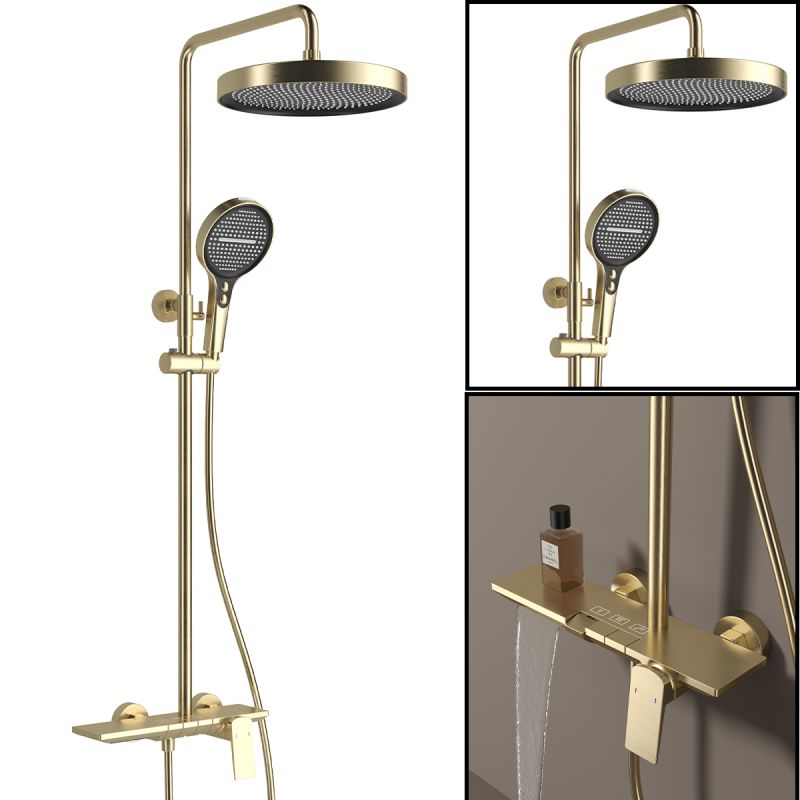 Sistem de dus si cada, Piano keys, suport obiecte, 3 functii, montaj pe perete, Auriu Mat, Bari