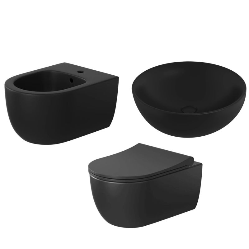 Set Vas Wc + Bideu + Lavoar Michael Negru, Semi-Mat