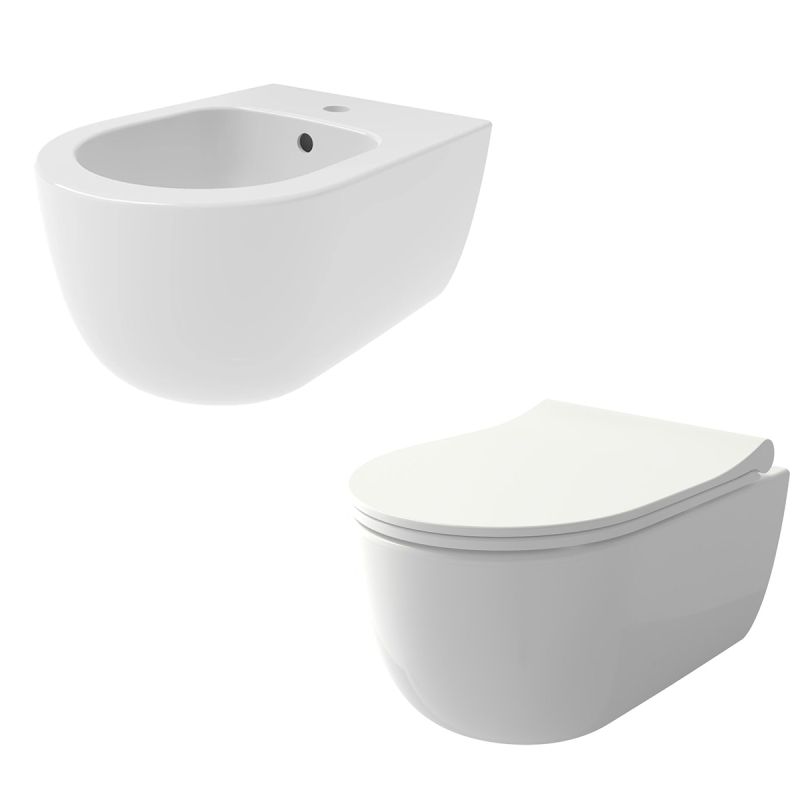 Set vas wc si bideu, Alb Lucios, montaj suspendat, 49x36 cm, colectia Michael