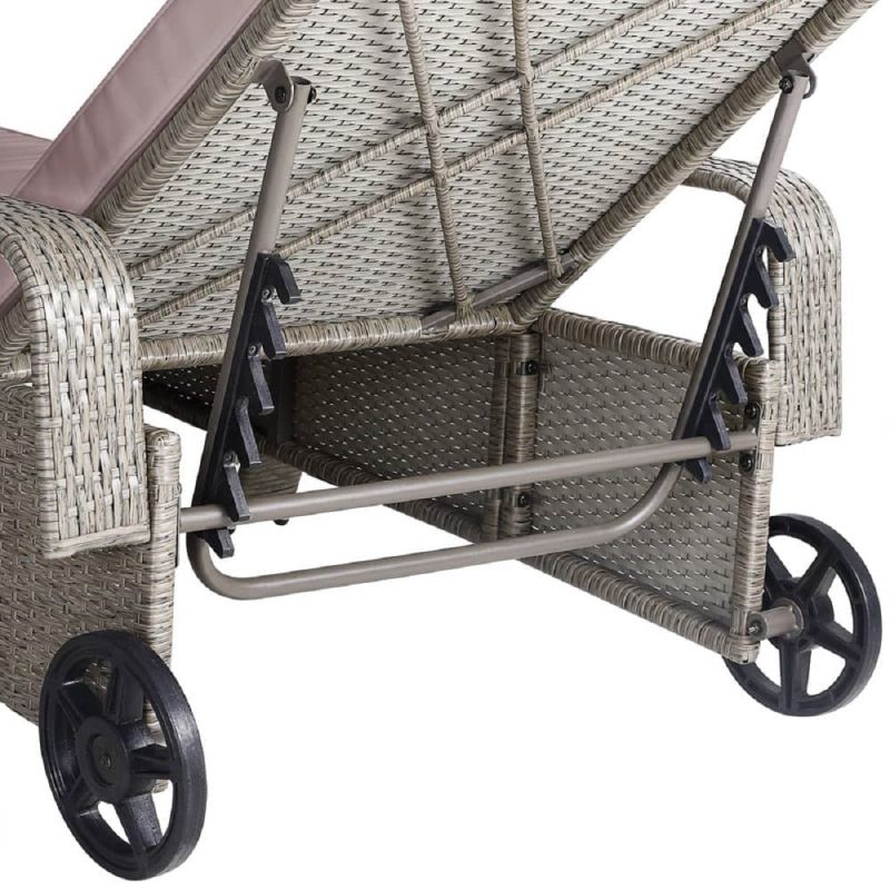 Sezlong din poliratan, roti pentru transport, cadru din otel, cu spatar reglabil in 6 trepte, perna Taupe inclusa, 190x90 cm