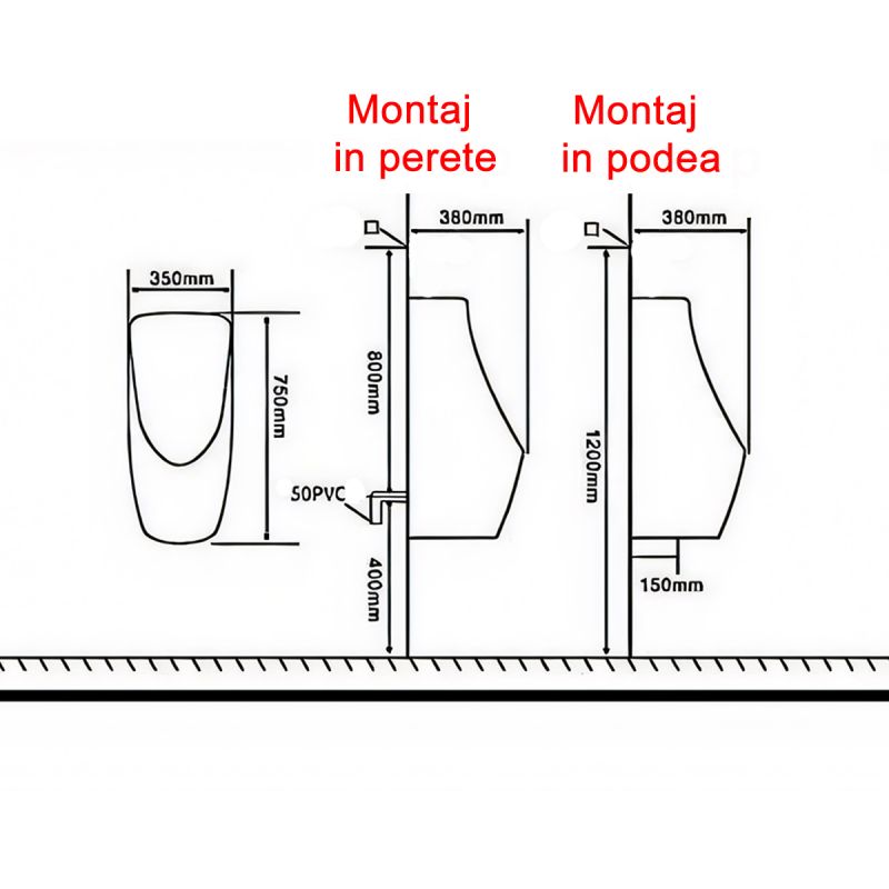 Urinal cu senzor integrat, scurgere in perete sau in podea, 35x38x75 cm, Alb Lucios, Lavino