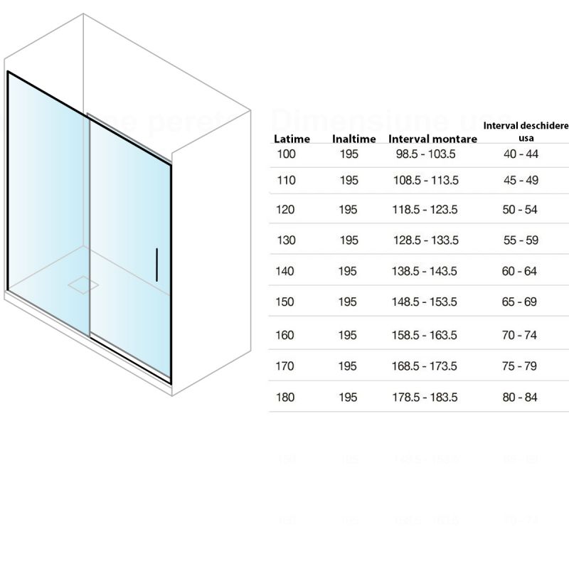 Usa de dus, glisanta, transparenta, sticla securizata de 6 mm, dimensiuni intre 100-180 cm, profil Negru Mat, Hanes