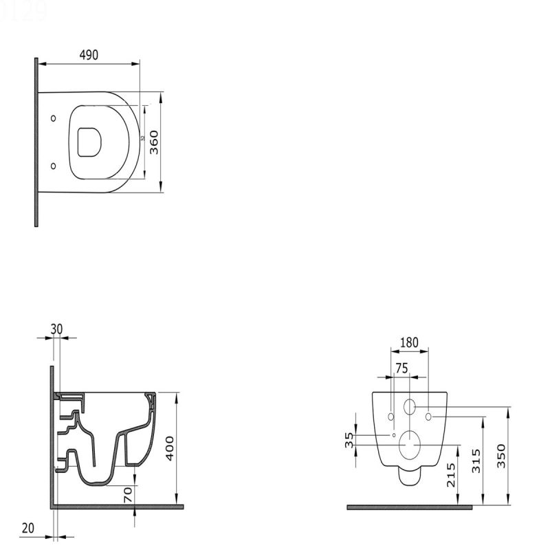 Vas WC EGO Michael Rimless, 49x36 cm, Negru, Power Colour, semi-mat, montaj suspendat, capac duroplast soft-close easy off