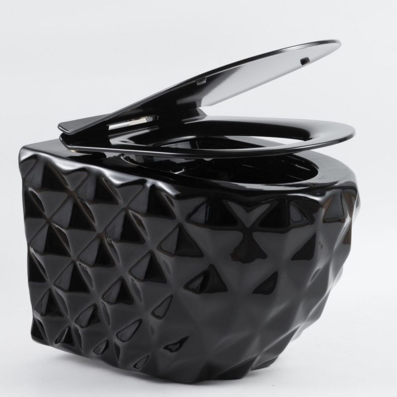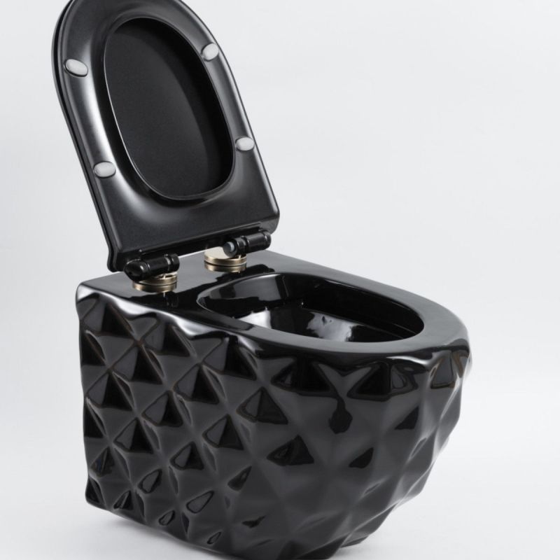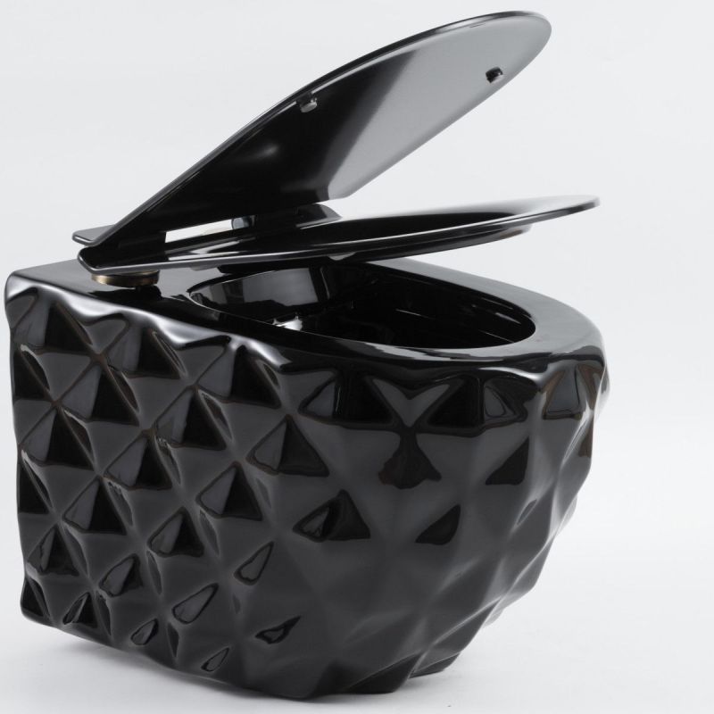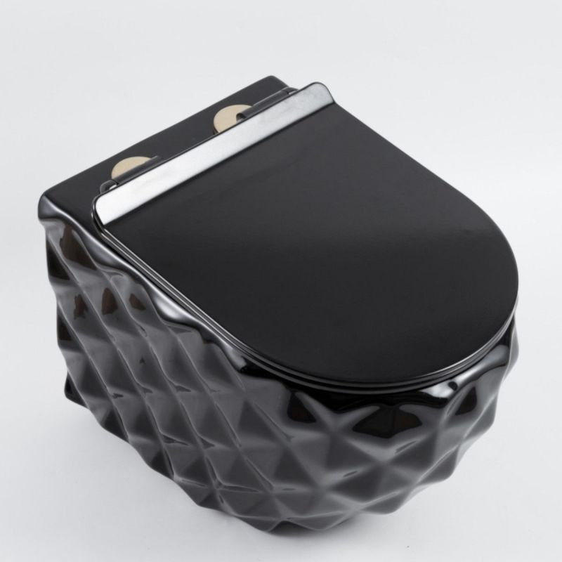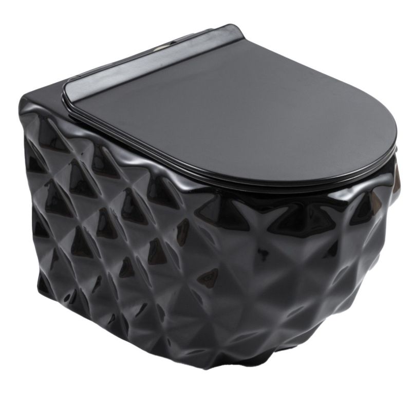Vas Wc, Negru, Rimless, 49x36 cm, montaj suspendat, capac Duroplast, ceramica sanitara, Sidef