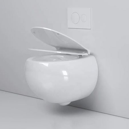 Vas wc, montaj suspendat, Rimless, Alb Lucios, 47x45 cm, ceramica santiara, capac duroplast cu Soft Close, Roli